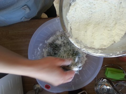 밀가루를 두세번에 나누어 버무리듯 섞어주다가