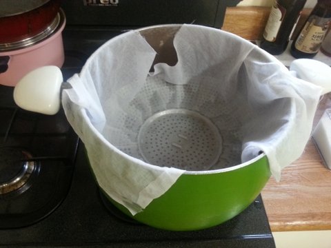 그리고 커다란 냄비에 물을 붓고 삼발이를 넣고 면보를 깔아 찝통 준비를 해놓습니다.