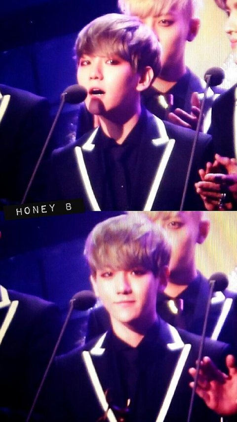 백현이 마이크 대고 얘기하는중