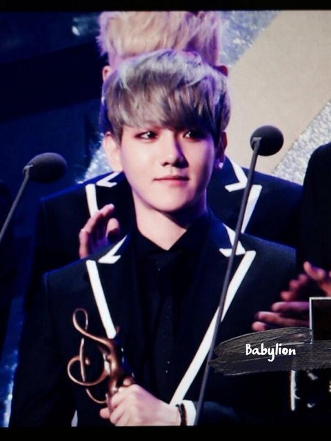 백현이 마이크 대고 얘기하는중