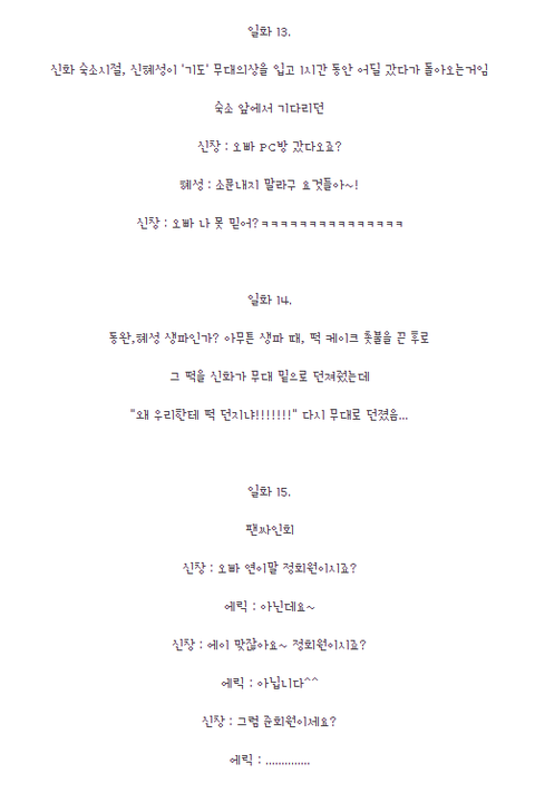 주황색 글씨 들어간거는 http://blog.naver.com/wlsgml3375?Redirect=Log&logNo=140156239335 여기가 출처공 일화라고 앞에 붙여져 있는거는 마지막에 출처 있공 아 진심 사랑하고 존경합니다 ♡♡♡♡ 우리도 언젠가는 저렇게 될 수 있을까....?