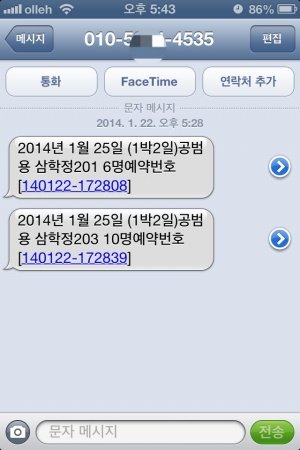예약을 하게되면 저한테 아래와같은 핸드폰 문자가 옵니다.