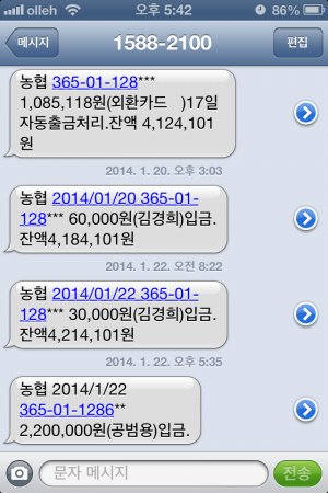 몇분 지나지 않아서 농협 입금알림 문자가 아래와같이 오더군요