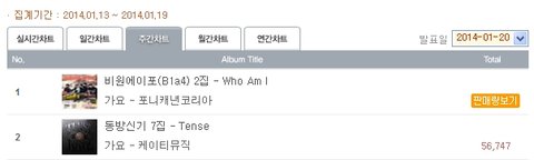 게다가 한터차트에 따르면 주간음반1위는 B1A4.