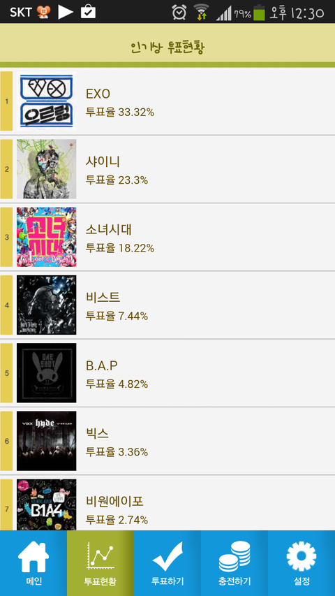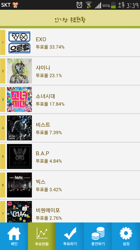 별빛분들진짜장난아니시다..대박단합력같은거짱인듯ㅜㅜㅜㅜㅜ순식간에거의치고올라오시네..난솔직히빅스좋아하거등..내동생이빅스팬이라나도자주봐서호감가는남자아이돌^^..별빛도베이비들도힘내자ㅏ!!!♥