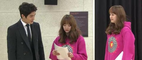 닥패보다 자연스러운 연기에 럭키 핑크후드티셔츠입으니