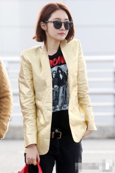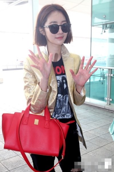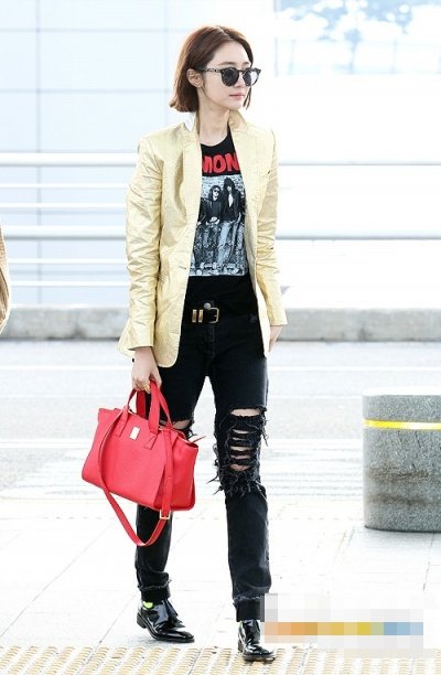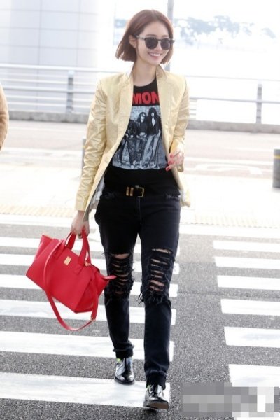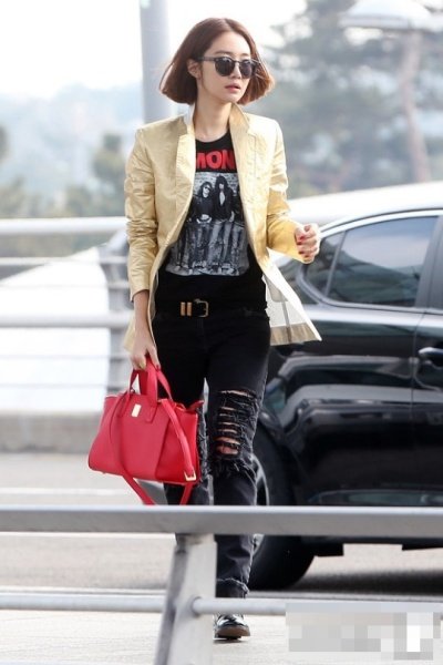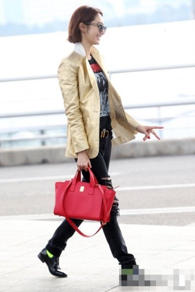 금박지 같은 자켓에 다 찢어진 배기스타일 진과 형광 포인트 구두에 빨간 가방ㅋㅋ