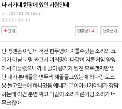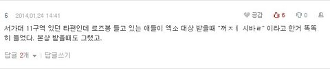 2, 12구역에 계셧던분 증언: 12구역 옆,옆,앞쪽에서 꺼지라고 소리치는 분들 플카에 '이호원'이라고 적혀있엇다고함(인피니트 호야의 본명이 이호원)"꺼지라고!!시발"라고햇다 함