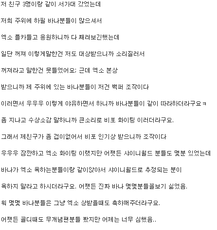 1. 팬분 일반인 친구 증언: 욕 하신분들 중 한분이 바나응원도구를 들고잇엇다고 함