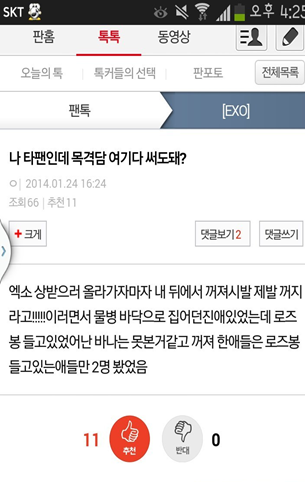-엑소 팬이 바나한태 맞음