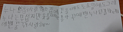 편지를 써왔는데 이렇게 써있더라구욬ㅋㅋㅋㅋ