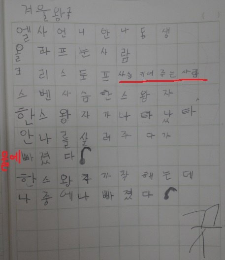 한 친구가 한글노트에 열심히 무언가를 쓰고있길래 가서 슥~ 봤더니