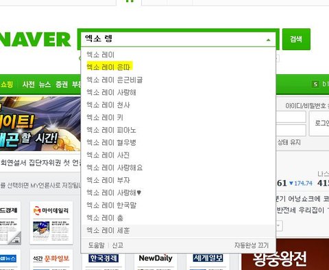 그래서 막 레이 덕질 하다가 네이버 레이 검색하면 자동차먼저 나오길래 엑소 레이를 쳤느데