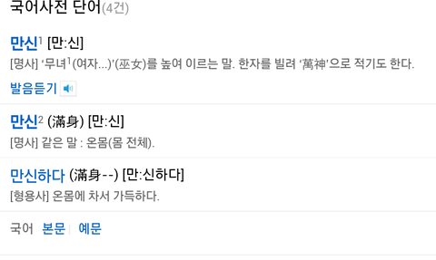 음 뜻 중에 뭘 까 온몸 같긴 한데 만신하다가 의미심장