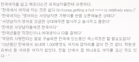 외국남성들이 한국여성들 우습게 본다던데 사실이네요