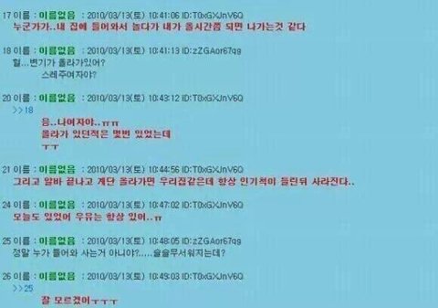 스레딕엔 소름돋는썰이 참 많음.. 죽은 내남자친구가 계속 보인다는썰도 대박이였었는데