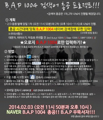 근데 bap 1004 가 낫지않을까~ ??일반분들은 검색할때 귀찬아서 B.A.P 1004 이것보단 bap 1004 이렇게 검색더할거같은뎅 ㅎ.ㅎ 아님말구