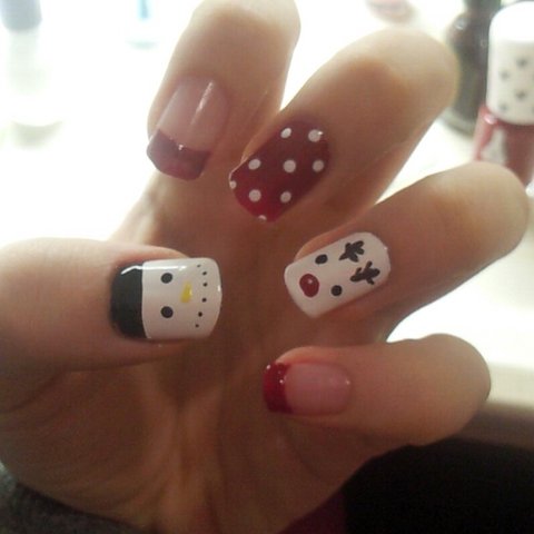 크리스마스 네일이에요!!눈사람 그리고 탑코트 칠하는데 검은색이 내려와서 눈사람이 검은눈물을 흘려서 처음부터 다시했어요ㅠ