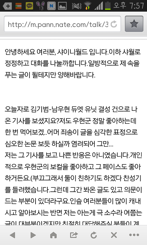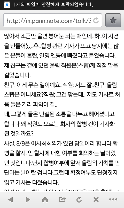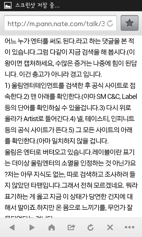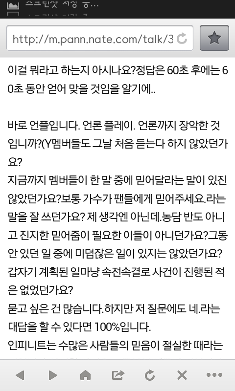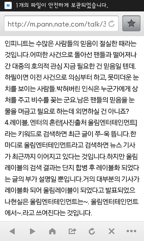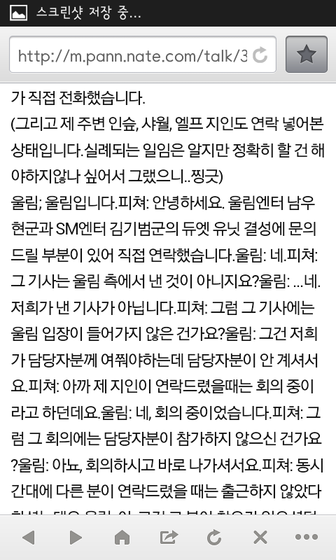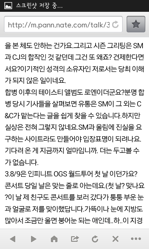 와...불과 몇분전까지만 해도 톡에 올라가 있던 sm.울림 합병과 인피니트한테 부당한 행동에 대한 글이 사라졌어ㅋㅋㅋㅋ미친ㅋㅋㅋㅋㅋㅋㅋㅋ와 스스로 인정한 꼴이네 내가 캡쳐한거 다올림