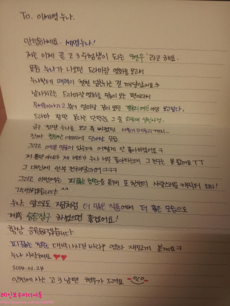 손편지 쓰는데만 2시간 30분 정도 걸렸다는......