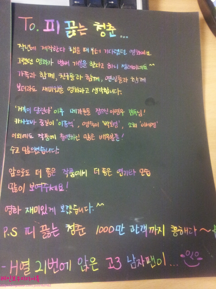 오늘 '피끓는 청춘' 무대인사를 갔다온 분들은 아시겠지만