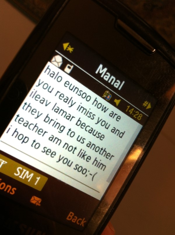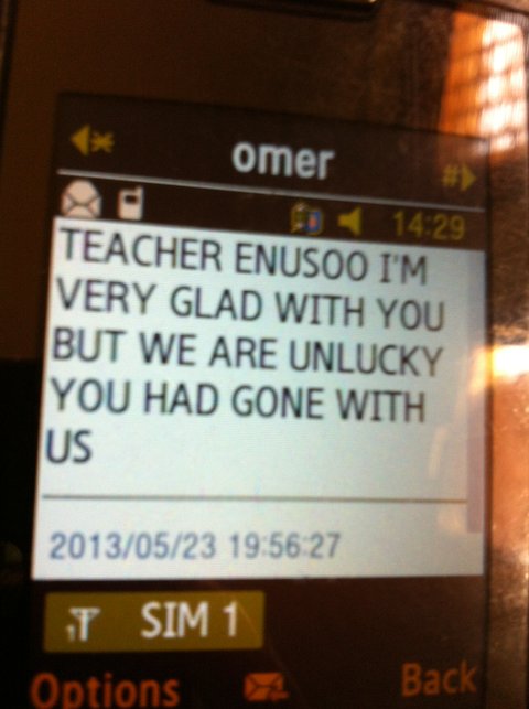 야시르와 나는 훗날 마흐무드를 통해 화해를 했다. 내가 너무 무책임한 것 같았다고 사과했고, 야시르는 나보다는 이브라힘에게 감정이 있는 것 같았다. 이미 카르툼으로 돌아갔는데 다시 포트수단으로 돌아와서 가르쳐도 좋다고ㅡ.,ㅡ