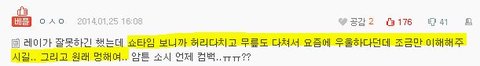 엑소멤버 레이 태도 논란 댓글.