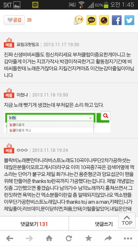 진짜 블락비치면 딱 블락비엑소 이게 먼저 뜨긴 하더라 맨밑에분 댓글좀..봐..핳ㅋ대단한 업적^~^