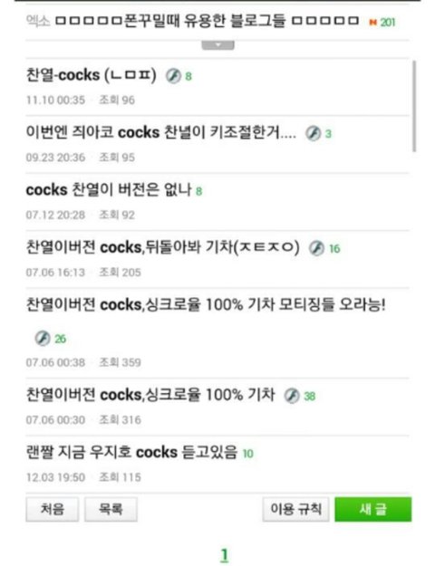 그래서 그런가보다. 이러면서 참고 화를 누그러뜨리고 며칠이 지낫는데 사건이 터져버렷네요 아이쿠. 찬열분이 cocks란 노래를 부르셧나보네요. 근데 cocks는 지코분의 믹스테잎으로써 작사작곡도 지코분이 하셧습니다. 그런데 엑소팬들이 찬열오빠가 불럿으니 우리꺼임. 이러는반응이 잇더라구요. 그럼 제가 으르렁 부르면 으르렁이 제노랜가요? 그건 아니라고 봐요. 아무리 블락비가 엑소분들보다 선배이신데. 곡을 왜뺏고 그러세요 엑소팬분들. 제말투 싸가지없는점 죄송합니다. 그러나 엑소팬들분 생각해보세요.