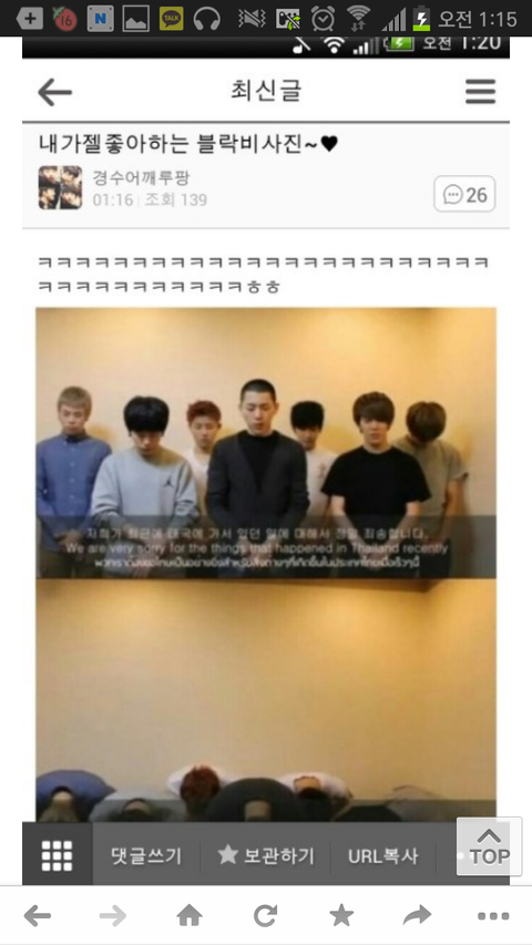 네 우선 베톡 감사드려요. 하하 이렇게 조회수많아 본거 처음이네요. 댓글보다가 제욕이잇더라구요. 저기 제글끝까디 안읽어보셧나보ㅏ요ㅎㅎ..무개념팬한테 쓴거에요! 무개념엓팬분들이 이거보고 정신 차리셧겟죠? 하하 그랫으면 좋겟네요. 마지막으로 블락비화이팅!