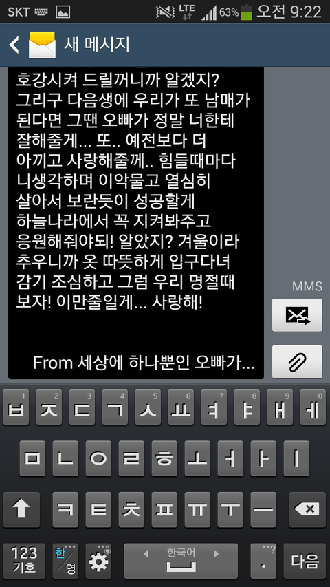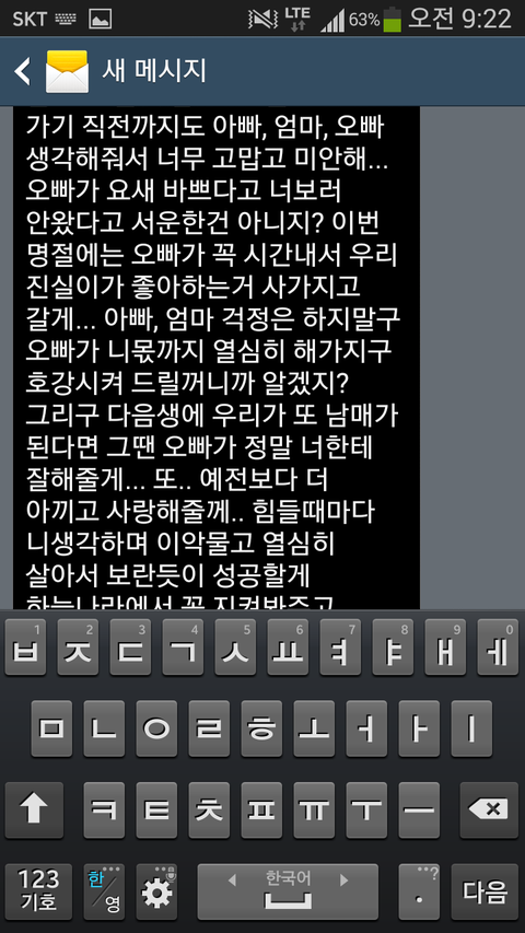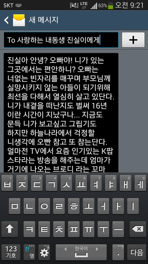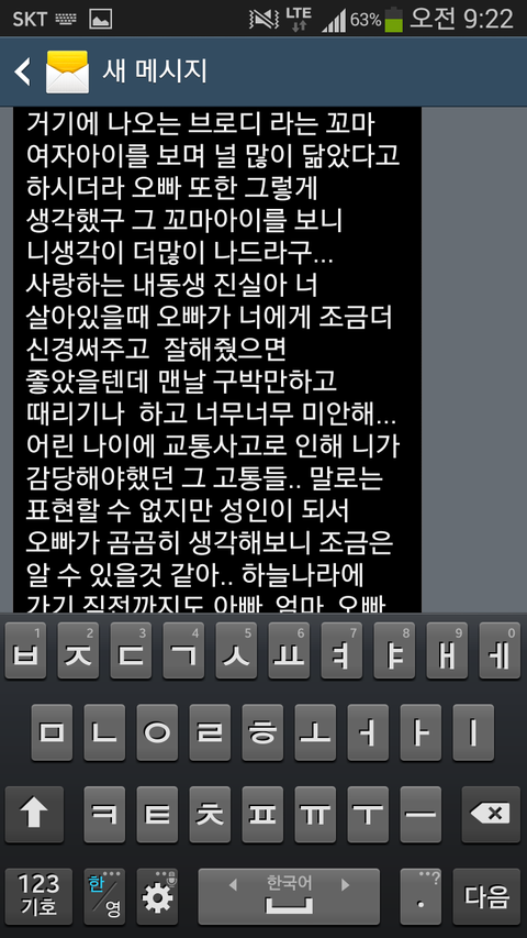 오빠가 하늘나라에 있는 여동생에게 보내는 문자메세지