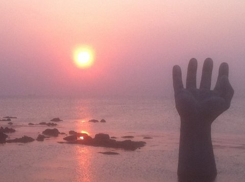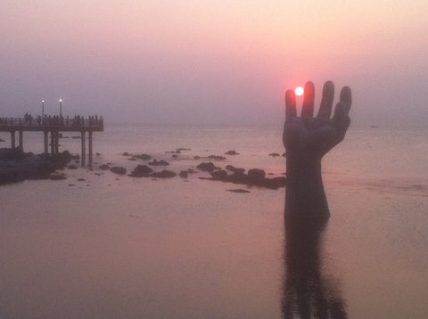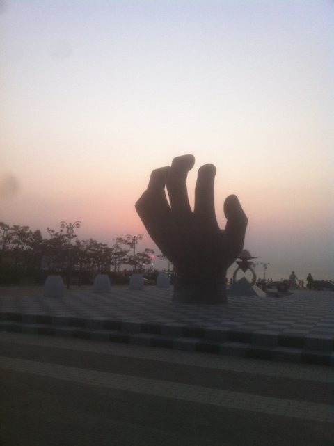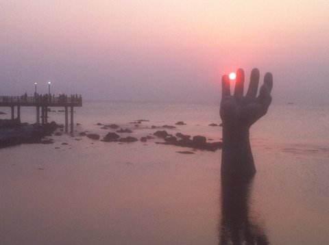 이곳에선 손 가락 사이에 해가 꼈을 때, 손 위에 해가 올라왔을 때가 사진 포인트라네요.