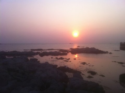 저 멀리 아주 큼지막한 해가 빠알간 해가 얼굴을 드러내고 있습니다. 너무 늦지 않게 딱 맞춰 왔네요