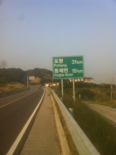 쉬지 않고 걷다 보니 표지판이 보입니다. 동해면까지 19km 남았다는군요. 아 아직 걷기 시작한지 얼마 안 됐는데 한참을 더 걸어가야 합니다.