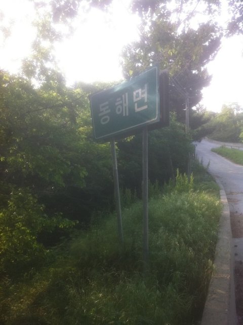 걷고 걷고 또 걷고 나오는 표지판들, 동해면 입성입니다.