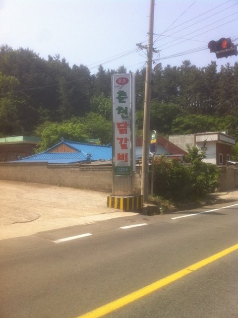 목적지가 가까워짐을 갈수록 느낍니다. 곧 3km가 남았다는 표지판이 보입니다. 근처에서 발견한 또다른 춘천의 명물 닭갈비를
