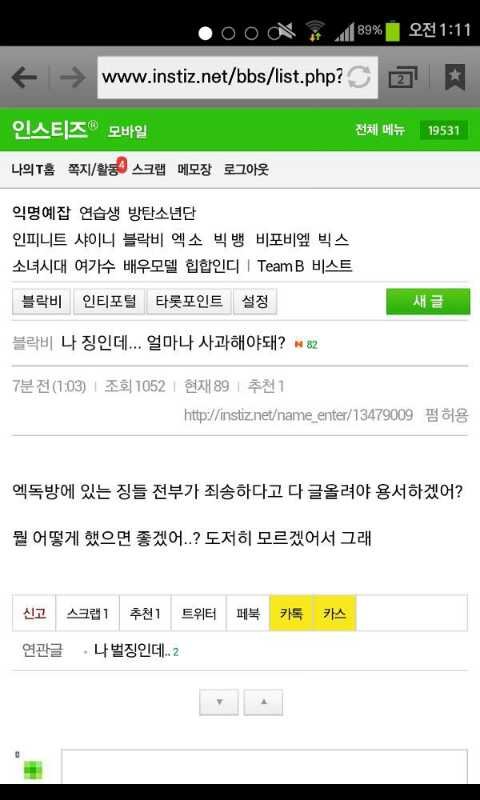 인스티즈에 또 하나의 글이 올라왔습니다.