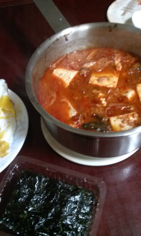 갓 지은 쌀밥에다 김 계란후라이와 먹은 참치김찢지개!