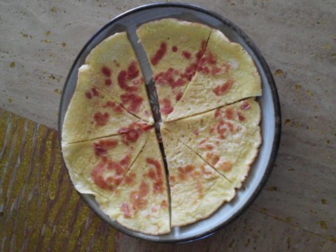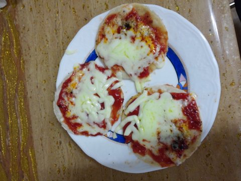 한개는 밀가루랑 계란이랑 섞어서 구운 거고 한개는 또띠아 구워서 케찹이랑 치즈 올려서 만든거야!
