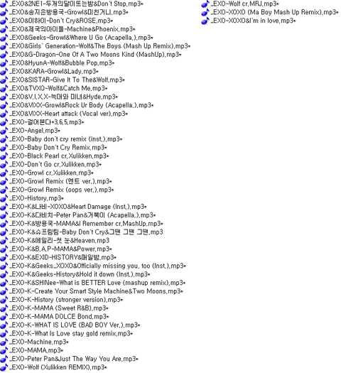 엑소팬분들께서 불법으로 2차 가공, 2차공유한 음원들입니다