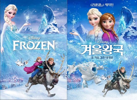 엽호판 대세 겨울왕국의 원작포스터 VS 한국판 포스터