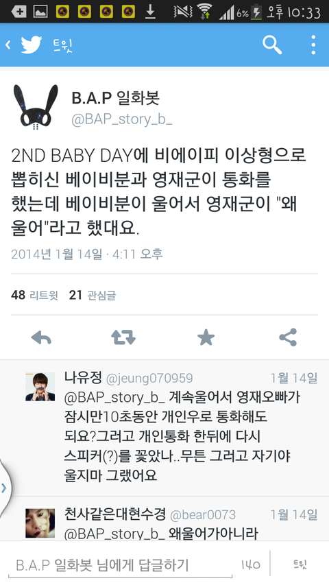 이건 트위터에 일화봇? 그런게있는데 그분이 올리신 트위터임. 베이비들은 참 설레겠음..