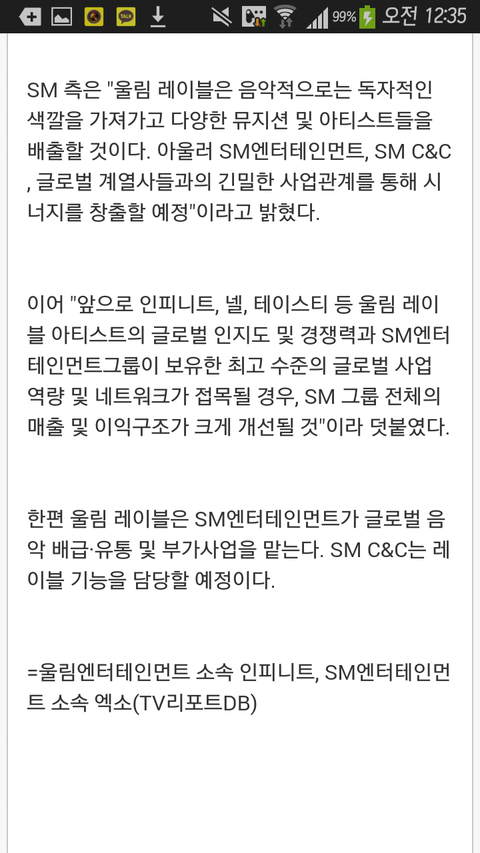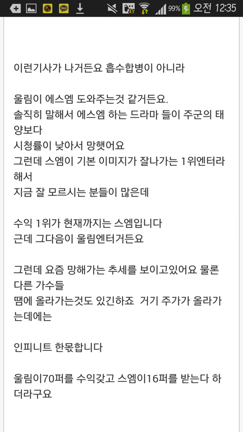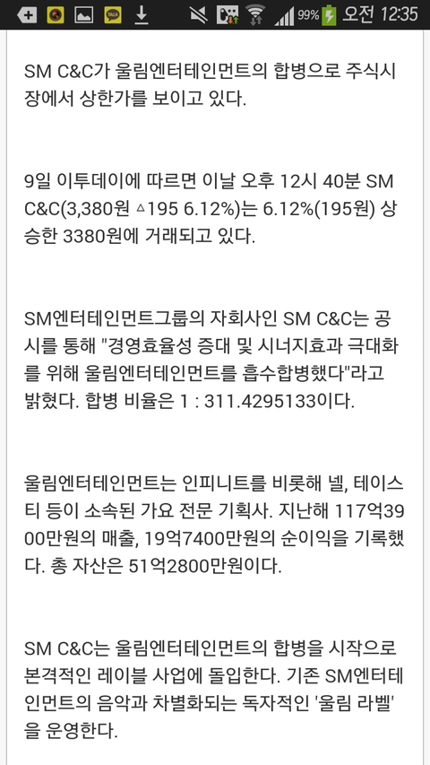 스엠이울림하고합병해서울림한테이익받은게잇음?