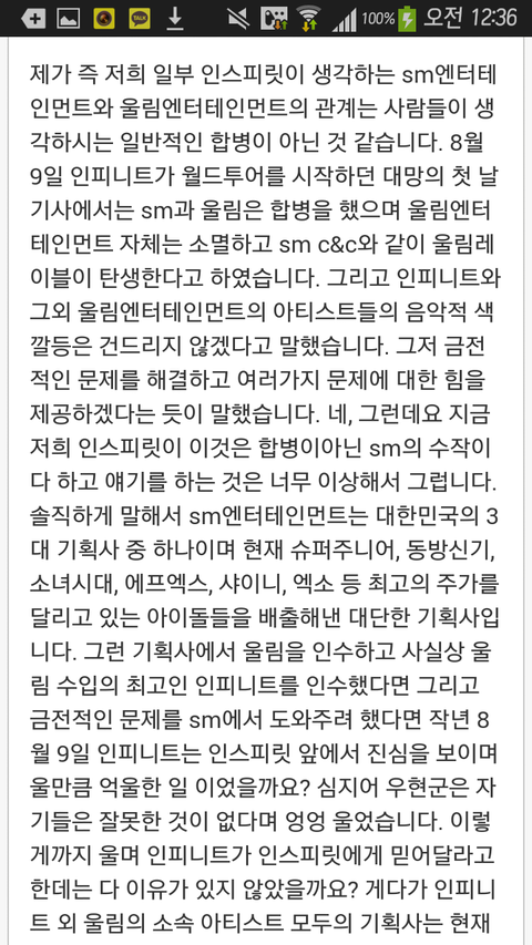 근데 뭐가 부족해서 인피니트가 에스엠이랑 합병을합니까?