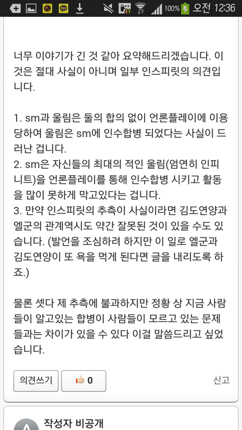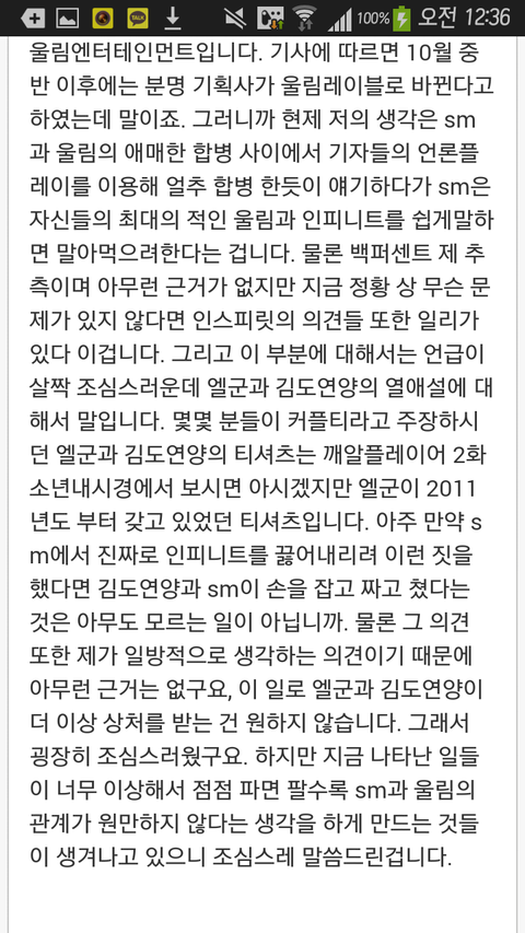 스엠이엑소를밀어줘서인피니트를저밑바닥으로끌어내릴려는소문