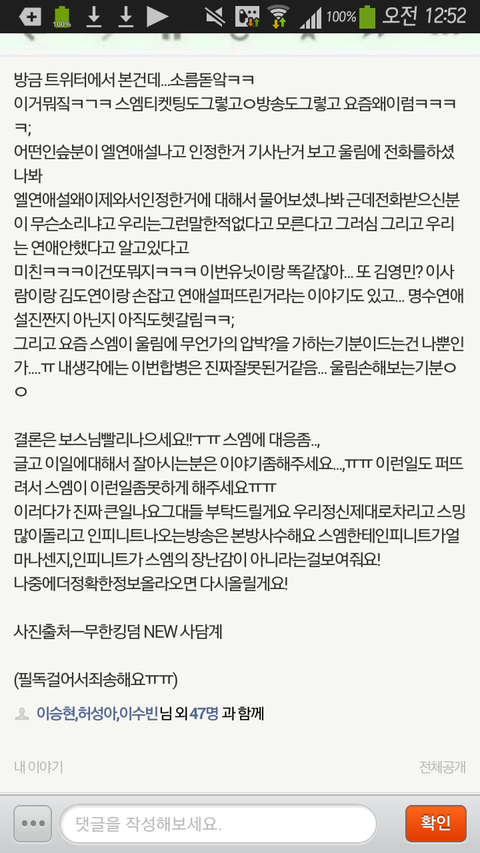 만약 사귀었다면 엘군 뿐만아니라 인피니트 멤버 전체와 다 아는 사이 일텐데