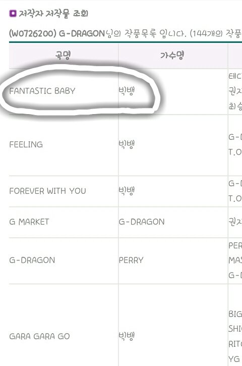 '권지용'이라 치면 144개의 곡이 나오는데