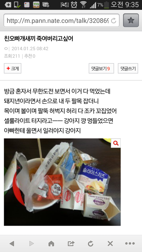 어제 벽반에 오빠가 나 많이먹는다고 때렸다고 글쓴애임 나ㅋㅋㅋㅋㅋㅋ 아 오빠 진짜 골때린당ㅋㅋㅋㅋㅋㅋ