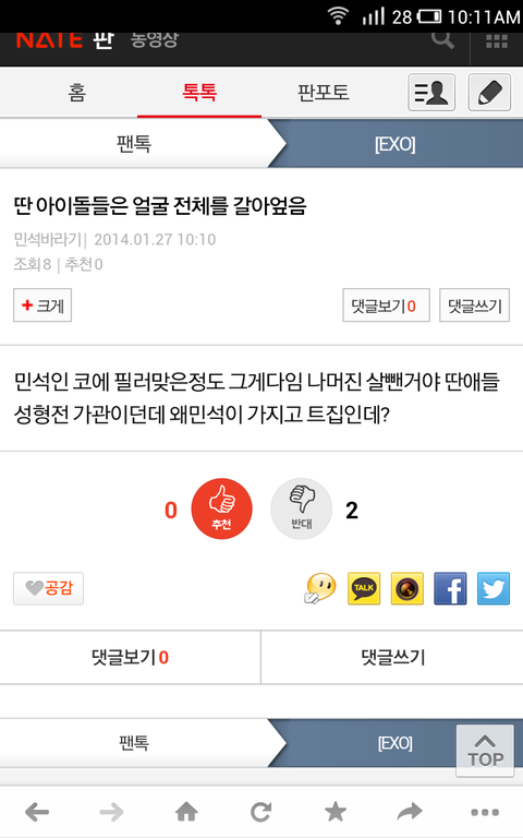 혹시 비포얘기한건 아니겠지요 다른 연예인도 까면서 자기 연예인 칭찬하는거 전 별로 좋지 않다고 봐요. 이거 무개념...아닌가? 하지만 꺼져 사건은 같은 바나로써 너무너무 죄송합니다. 진짜로 죄송합니다. 제가 어떻게 할순 없지만 저도 엓팬이었는데.. 그마음 뭔지 알것 같아요 죄송합니다.