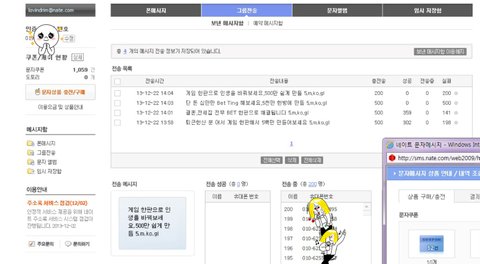 ------------------------------------------------------------------------------ 요즘 카드사 개인정보유출사건 이후 스팸 메세지가 늘었다는 분들 많으시죠 ??? 그 스팸이 발송되는 곳이 이 곳 네이트입니다 그리고 그 메세지는 네이트 해킹으로 도용된 평범한 네이트 유저들의 피해 도토리들로 보내집니다